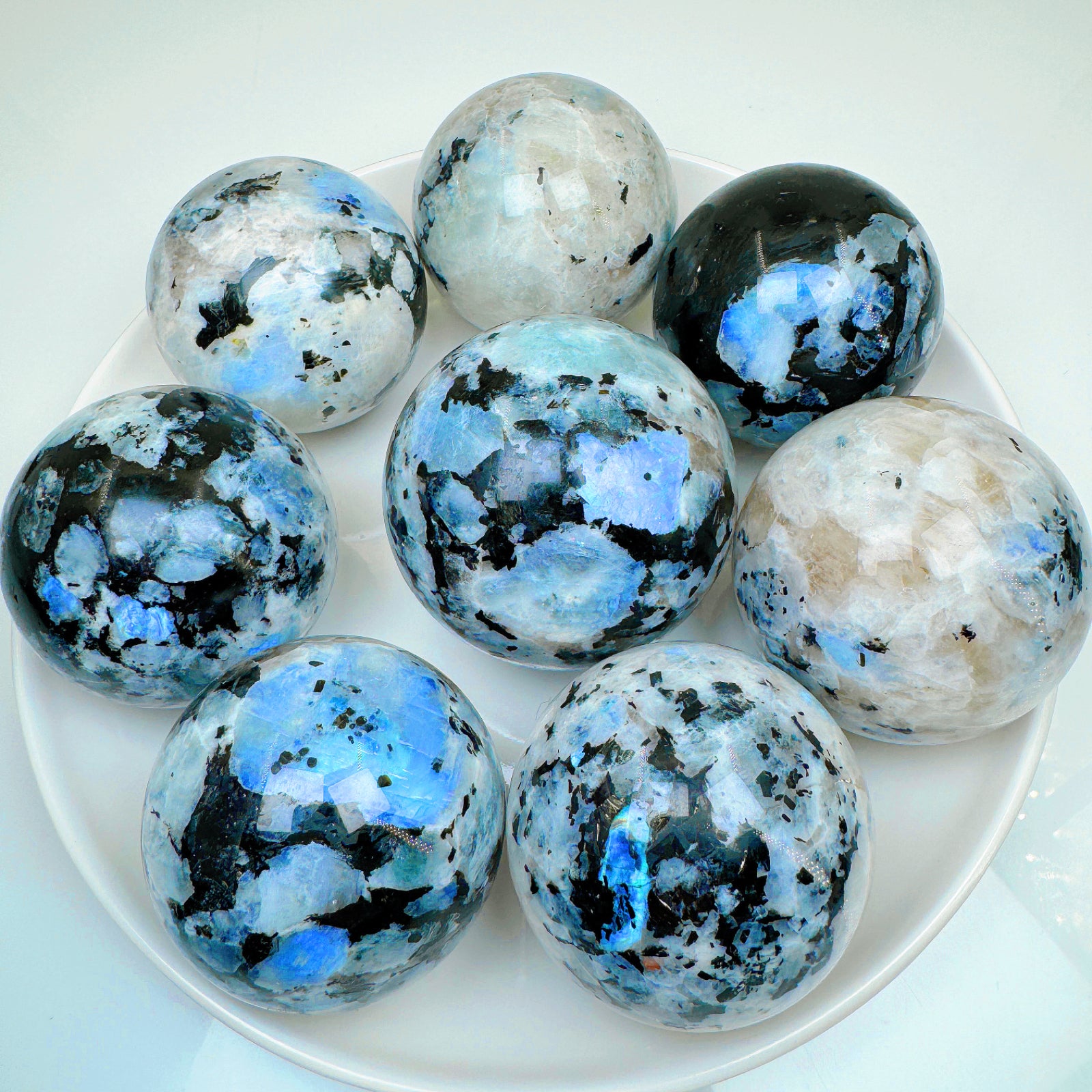 black and white moon stone sphere