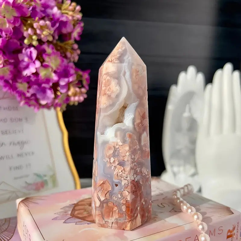 pink flower agate tower